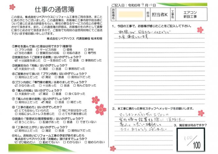 消防法に基づいて、入念に確認して下さり、ありがとうございました。