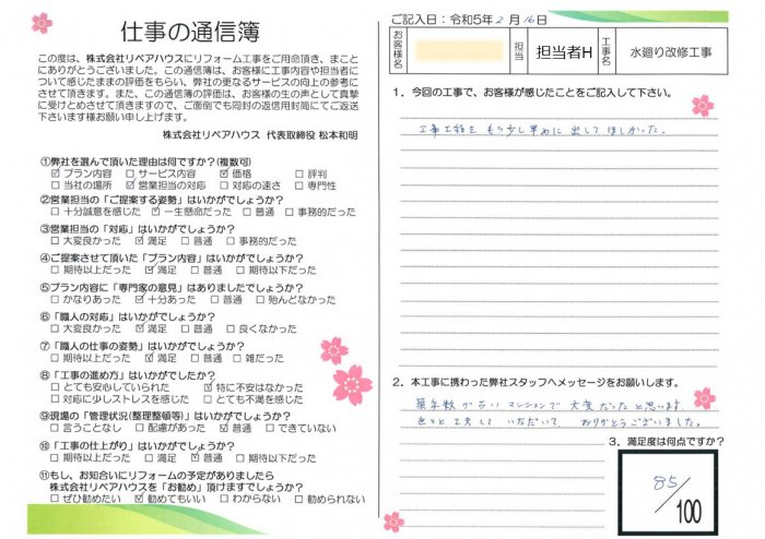 ④ご提案させて頂いた「プラン内容」はいかがでしょうか?