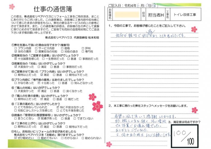 対応が親切で安心感があり、とても良かったです。