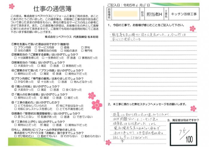 騒音なども気にかけていただき、大変良かった。