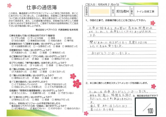 工事が始まると水の管が思わぬ状態だったので丁寧に仕事をしてくださり、ありがたかったです。
