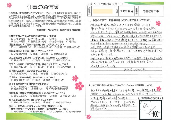 とてもよく分かりました。築年数を考慮すると、仕上がりにはそれなりに満足しています。