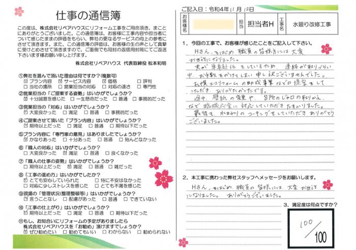 札幌エコリフォームの助成事業などの提案をしていただき、ありがたかったです。