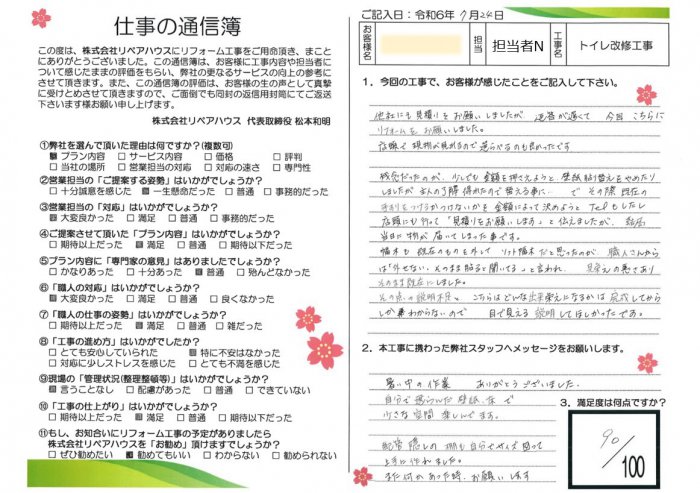 他社にも見積りをお願いしましたが、返答が遅くて、今回こちらにリフォーム